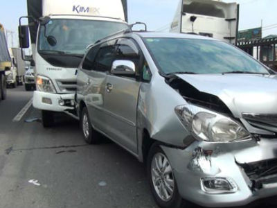 Đang trên đường từ TP.HCM về Long An đi ăn tiệc thôi nôi, 6 người trong một gia đình bị xe tải tông suýt chết.