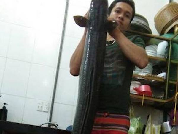 Làm nghề chài lưới trên sông Nậm Nơn (Nghệ An), một người dân đã bắt được con cá lệch dài 1,7, nặng 15 kg.