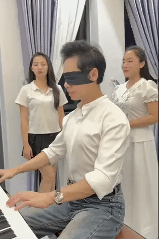 Một đoạn clip do ca sĩ Ngọc Sơn chia sẻ trên fanpage đang thu hút nhiều sự quan tâm của cộng đồng mạng khi anh trổ tài bịt mắt chơi piano để hai học trò thể hiện giọng hát.