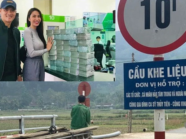Trang 1Thủy Tiên làm từ thiện xây cầu ở Nghệ An: Tiền trên hợp đồng lệch 645 triệu với giá thầu?