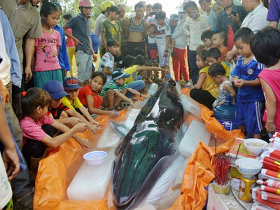 Trang 1Vụ cá voi dạt vào biển Nam Định: Có hay không việc xẻ thịt bán?