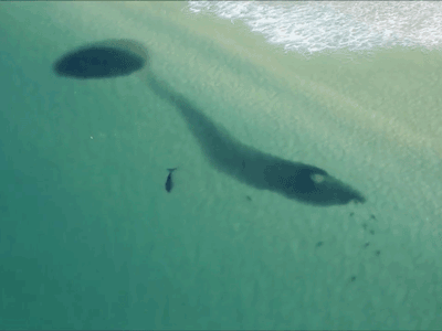 Một con cá voi lớn cùng bầy cá mập lao vào ngấu nghiến đàn cá nhỏ ở bờ biển New South Wales, Australia.