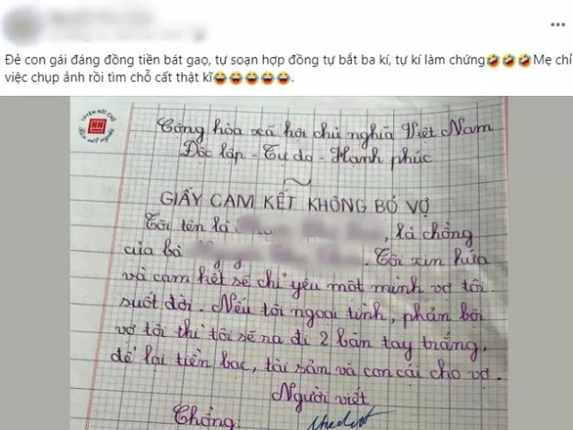 Sợ bố phản bội mẹ, bé gái bắt bố ký giấy 'cam kết không bỏ vợ'