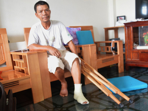 Ông Mẫn bị gãy ngón chân, xương sườn sau khi bị hành hung - Ảnh: THANH BA