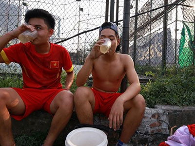 Cởi trần uống trà đá trong mùa đông tại Hà Nội