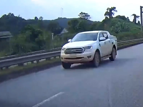 Đang điều khiển xe trên cao tốc Nội Bài - Lào Cai (đoạn gần nút giao Mậu A - IC4), tài xế giật mình phát hiện ô tô bán tải bất chấp nguy hiểm đi ngược chiều.