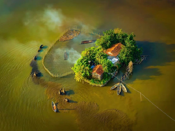 Khung cảnh đàn trâu, đàn vịt lội nước quanh "ngôi nhà hình trái tim" giữa dòng sông Diêm Điền đã thuyết phục ban giám khảo của cuộc thi Drone thế giới và xuất hiện trên nhiều báo nước ngoài.