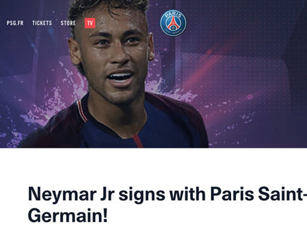 Lúc 2h36 ngày 4/8 theo giờ Việt Nam, website của câu lạc bộ Paris Saint Germain thông báo hoàn tất bản hợp đồng thế kỷ với cầu thủ Neymar Jr.