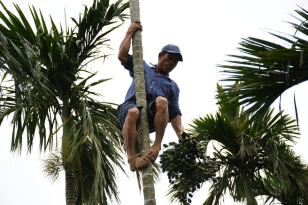 Số lượng cây ngày càng ít, thời tiết không thuận lợi khiến giá cau tại các chợ ở Thái Bình vào những ngày cận Tết trở nên đắt đỏ, từ 2.000 đồng lên đến 10.000-15.000 đồng/quả.