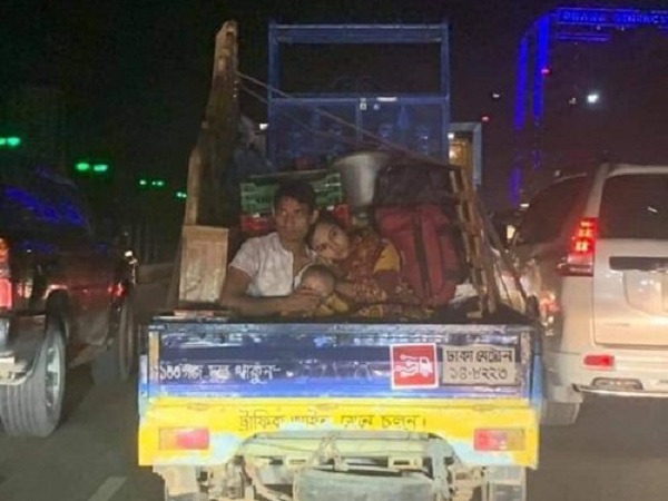 Trong bức ảnh, cô gái trẻ dựa đầu vào vai chồng, cả hai ngồi trên một chiếc xe cũ kỹ, phía sau là đủ mọi thứ bụi bặm.