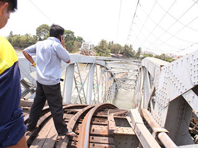 Chùm ảnh: Cầu Ghềnh sập xuống sông sau cú húc của sà lan