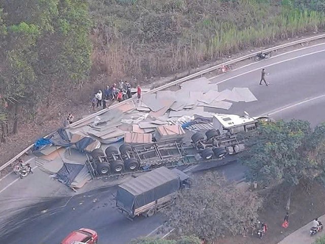 Một vụ tai nạn lật xe đầu kéo vừa xảy ra vào chiều 24/2 tại khu vực đường dẫn xuống cầu Thủ Biên (Đồng Nai). Hàng trăm tấm gỗ tràn ra mặt đường đã khiến tuyến giao thông quan trọng này bị ùn tắc nghiêm trọng suốt nhiều giờ.