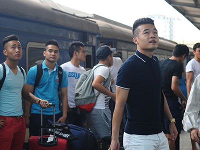 Nhóm cầu thủ Nghệ An di chuyển từ 5h sáng và có hơn 7 tiếng ngồi tàu trước khi có mặt ở Hà Nội để tập trung cùng đội tuyển Việt Nam và U23 quốc gia.
