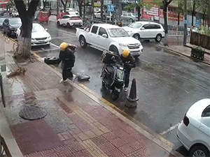 Clip: Cây đổ suýt đè trúng hai shipper đang giao hàng