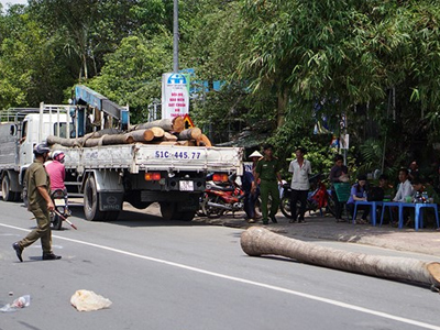 Khi nhóm công nhân đang thực hiện thao tác nâng gỗ lên xe thì cần cẩu bị gãy. Lúc này, cây dừa dài 5 m rơi xuống đường, đè thiếu niên tử vong.