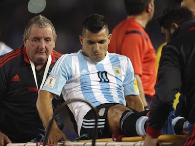 Sergio Aguero đã phải nhờ tới sự can thiệp của các bác sĩ và rời sân bằng cáng sau pha va chạm với đối thủ trong trận đấu gặp Ecuador tại khuôn khổ vòng loại World Cup vừa diễn ra.