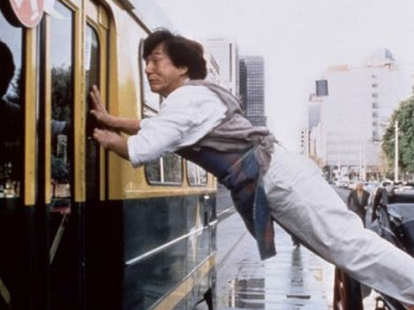 Những pha hành động nguy hiểm như nhảy từ trên cao, đu người, đu tàu xe, lao qua cửa kính... đã trở thành những pha hành động mang đậm phong cách Thành Long.