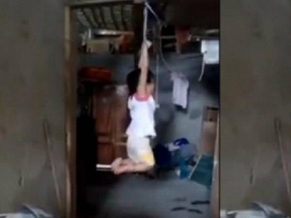 Trong đoạn clip, cháu bé kêu gào thảm thiết, giãy giụa vì bị cột 2 tay, treo lên xà nhà. Lực lượng chức năng huyện Vĩnh Tường (Vĩnh Phúc) đang vào cuộc làm rõ.