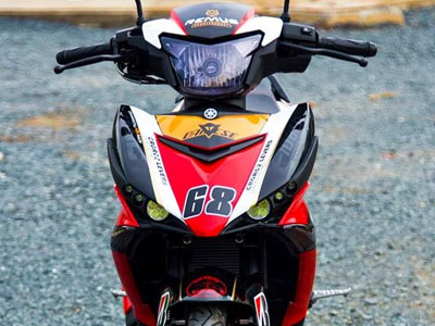 Chiếc xe số thể thao của Yamaha được sơn chuyển màu xanh dương - tím cho dàn áo và cặp mâm tạo sự khác biệt so với màu xanh GP nguyên bản.