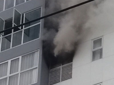 Trang 1Cháy lớn ở cao ốc đang xây làm trụ sở ngân hàng Kuwait, khói đen kịt bầu trời