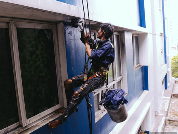 'Người nhện' leo chung cư Carina chùi rửa bức tường ám khói đen kịt sau vụ cháy khiến 13 người chết