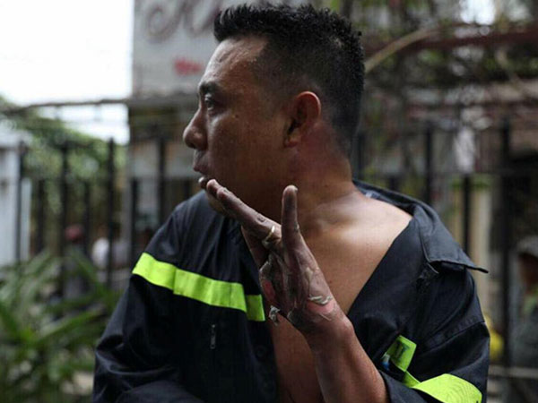 “Trong số hơn 20 người tôi cứu được thì có người đã ngất xỉu, có một chị mang thai và cả một gia đình trẻ. Khi đưa họ lên tầng 14, tôi mệt nhoài, muốn ngất xỉu" chiến sĩ Quang kể.