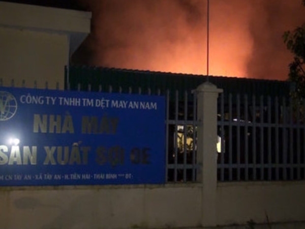 Đến sáng nay (3.9), đám cháy nghi do chập điện tại kho chứa 3.000 tấn bông sợi của Công ty TNHH thương mại dệt may An Nam (xã Tây An, huyện Tiền Hải, Thái Bình) mới được dập tắt.