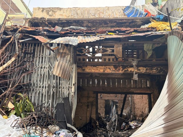 Lực lượng chức năng đang phong tỏa hiện trường để điều tra nguyên nhân vụ hỏa hoạn xảy ra tại một quán cơm chay trên đường Phạm Đăng Giảng (phường Bình Hưng Hòa, TP.HCM), khiến hai mẹ con tử vong.