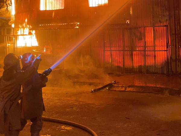 Xưởng làm biển quảng cáo bốc cháy trong đêm, lan sang 2 nhà liền kề