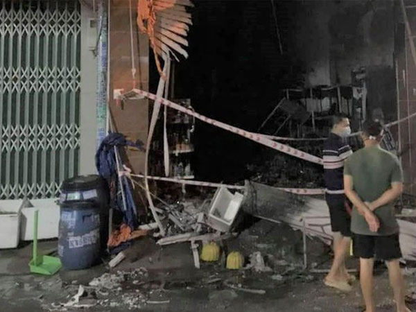 Ngọn lửa bùng cháy dữ dội lúc sáng sớm từ ki-ốt văn phòng phẩm, lan sang hai cửa hàng thiết bị điện-nước và điện thoại.