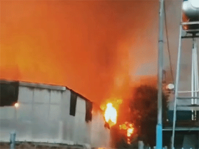 Hiện trường biển lửa bao trùm công ty gỗ, nhiều người dập lửa bất thành, sợ hãi tháo chạy thoát thân