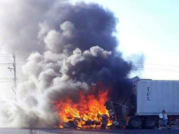 Chiều 12/4, xe container bất ngờ bốc cháy khiến giao thông trên quốc lộ 1 qua tỉnh Bình Thuận bị ùn tắc hơn một giờ.