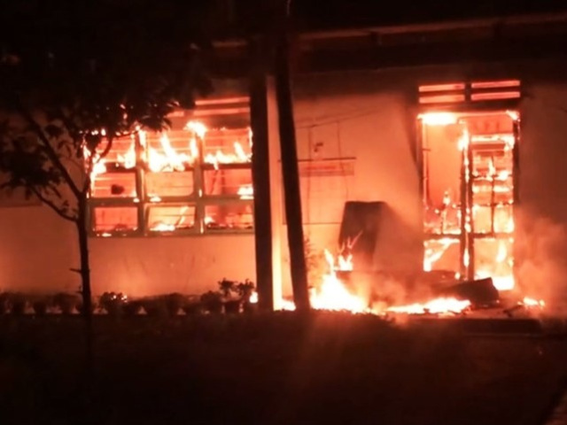 Trường học bốc cháy nghi ngút trong đêm, nhiều tài sản bị thiêu rụi