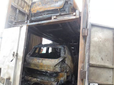 Cháy xe đầu kéo, 3 ô tô con trên xe này bị thiêu rụi
