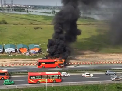 Xe khách bốc cháy ngùn ngụt trên cao tốc Pháp Vân – Cầu Giẽ