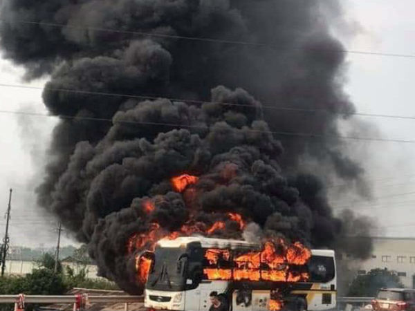 Xe 45 chỗ bốc cháy ngùn ngụt sau tiếng nổ lớn