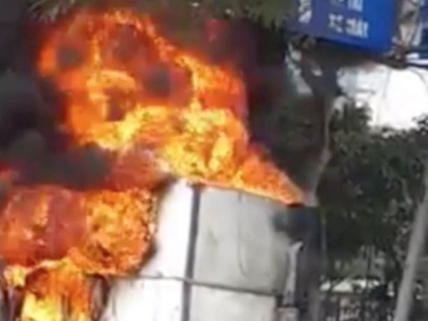 Sài Gòn: Xe container bốc cháy ngùn ngụt, tài xế đạp cửa thoát thân