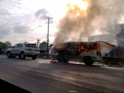 Tối 28-5, công an huyện Cái Bè tỉnh Tiền Giang cho biết đang điều tra một vụ tai nạn giao thông khi 3 xe tông liên hoàn trên quốc lộ 1A thuộc địa bàn huyện Cái Bè, làm 1 xe cháy rụi.