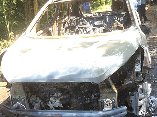 Chiếc Innova màu bạc ở Nghệ An đang đậu bên đường bỗng bốc cháy ngùn ngụt lúc rạng sáng. Chỉ sau 2 giờ, ngọn lửa đã thiêu rụi hoàn toàn, chỉ còn trơ lại bộ khung.