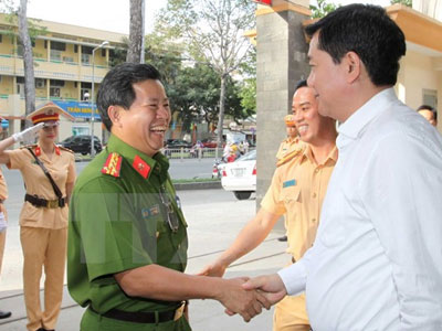 Chiều 31/1, Bí thư Thành ủy Thành phố Hồ Chí Minh Đinh La Thăng cùng Đoàn công tác thành phố đã tới thăm và làm việc với Phòng Cảnh sát giao thông đường bộ-đường sắt (PC67), Công an Thành phố Hồ Chí Minh.