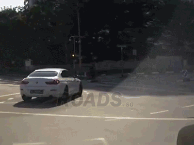 Một chiếc xe hơi đang rẽ phải trên phố Singapore đột nhiên đâm trúng một chiếc ôtô khác không rõ từ đâu xuất hiện.