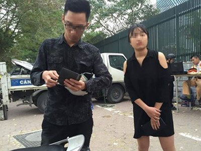 Sau khi rảo quanh nhiều tuyến đường, đôi nam nữ bỗng muốn cướp giật của người khác nên theo sau, áp sát xe của 2 cô gái để rồi 1 người bị bắt.