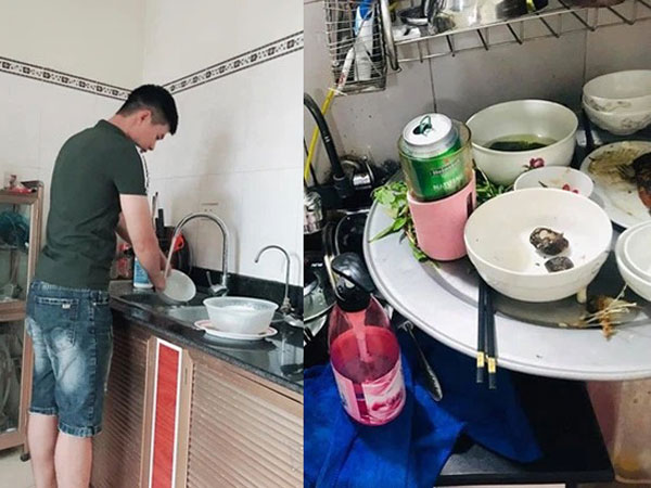 Kể cả có lần chồng bị ốm, tôi khuyên anh ăn xong thì đi ngủ cho ra mồ hôi nhanh khỏi. Nhưng anh vẫn kiên trì đi rửa bát xong mới nằm lên giường.