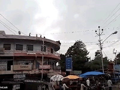 Đoạn clip ngắn ghi lại cảnh tượng một con bò lao xuống dưới từ nóc tòa nhà 3 tầng khiến nhiều người cảm thấy giật mình, khó hiểu.