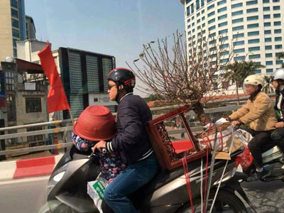 "Còn gì đẹp hơn một hình ảnh hai cha con ra đường mang về nhà một gốc đào, một chậu cây, một cái bàn để bày trí gia cảnh mấy ngày xuân cơ chứ, nhưng mà dù sao đi nữa vẫn phải đặt sự an toàn của con trẻ là trên hết, Tết rồi..."