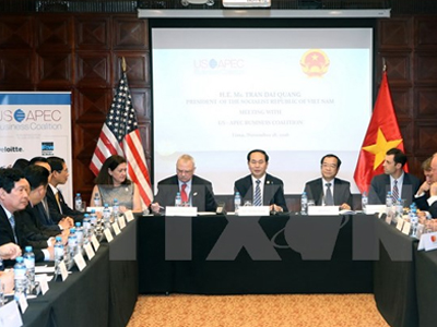 Theo đặc phái viên TTXVN, nhân dịp tham dự Tuần lễ Cấp cao lần thứ 24 của Diễn đàn Hợp tác kinh tế châu Á-Thái Bình Dương (APEC) tại Lima, Peru, chiều 18/11 theo giờ địa phương (sáng 19/11 theo giờ Hà Nội), Chủ tịch nước Trần Đại Quang đã có cuộc tiếp Phó Tổng thống Indonesia Jusuf Kalla đến chào xã giao.