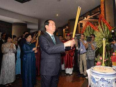 Ngày 20/1, Chủ tịch nước Trần Đại Quang cùng phu nhân và đoàn kiều bào Việt Nam ở nước ngoài đã đến dâng hương các vua Hùng ở Khu tưởng niệm các vua Hùng - công viên Văn hóa Lịch sử Dân tộc (quận 9, TPHCM).