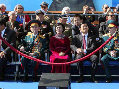 Sáng 9/5/2015, tại Quảng trường Đỏ ở Thủ đô Moskva (LB Nga), Chủ tịch nước Trương Tấn Sang và Phu nhân tham dự Lễ duyệt binh kỷ niệm lần thứ 70 ngày Chiến thắng trong Chiến tranh Vệ quốc vĩ đại (9/5/1945 - 9/5/2015).