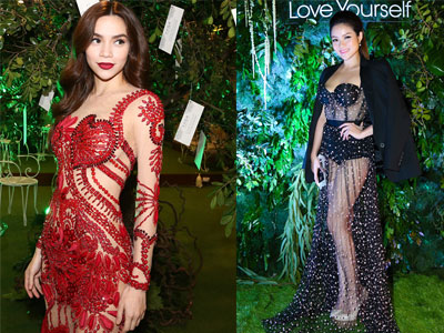 Hai người đẹp ghi điểm với thiết kế váy gợi cảm và cách trang điểm, làm tóc ăn ý.