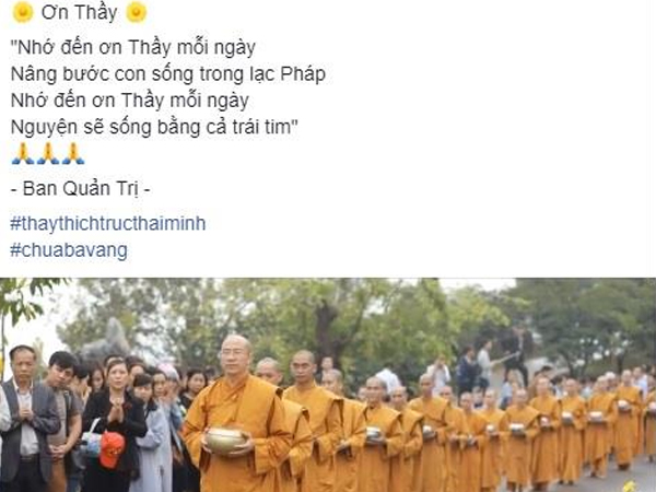 Trụ trì chùa Ba Vàng, đại đức Thích Trúc Thái Minh đã trao đổi với Báo Người Lao Động về việc bị đề nghị tạm đình chỉ tất cả các chức vụ trong Giáo hội Phật giáo Việt Nam.